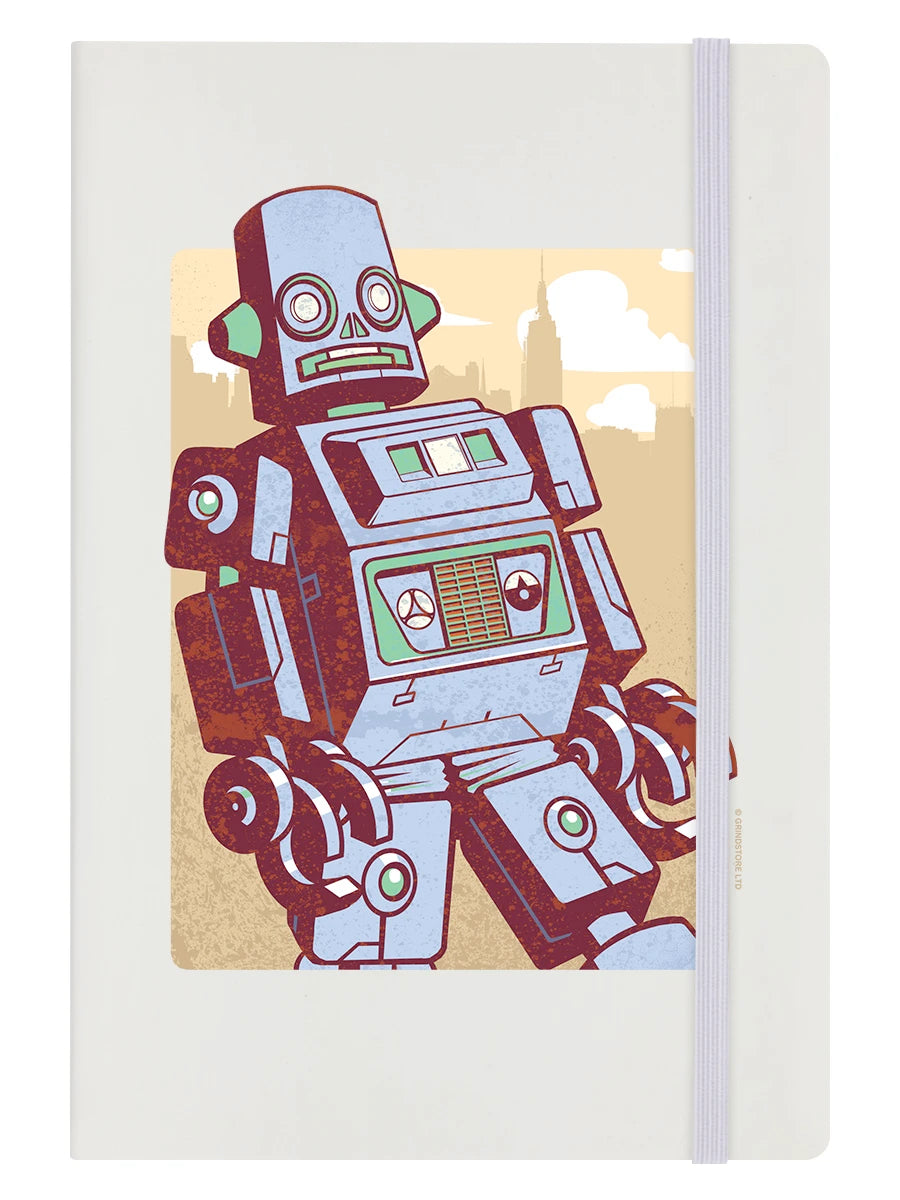 Blaues Retro-Roboter-Notizbuch im A5-Format mit festem Einband, Creme