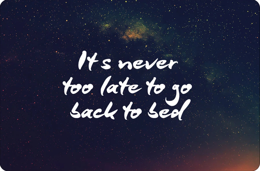 Es ist nie zu spät, wieder ins Bett zu gehen, kleines Blechschild