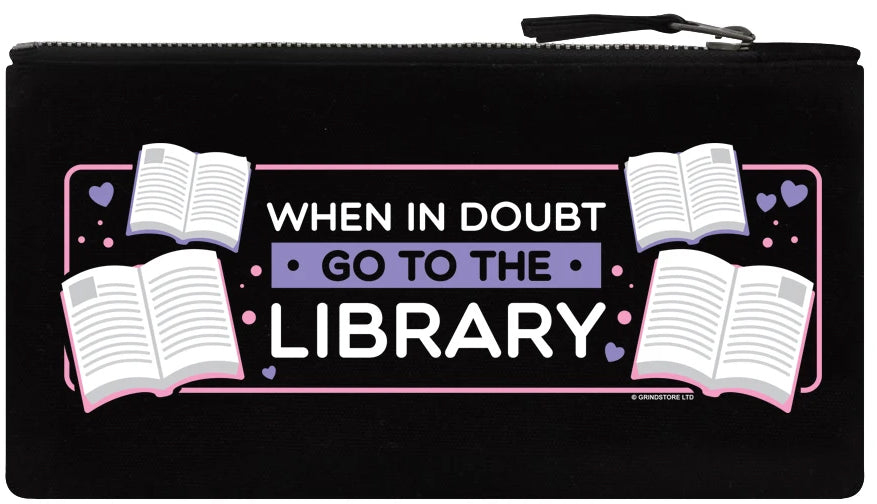 Wenn Sie Zweifel haben, gehen Sie in die Bibliothek – Schwarzes Federmäppchen mit Reißverschluss