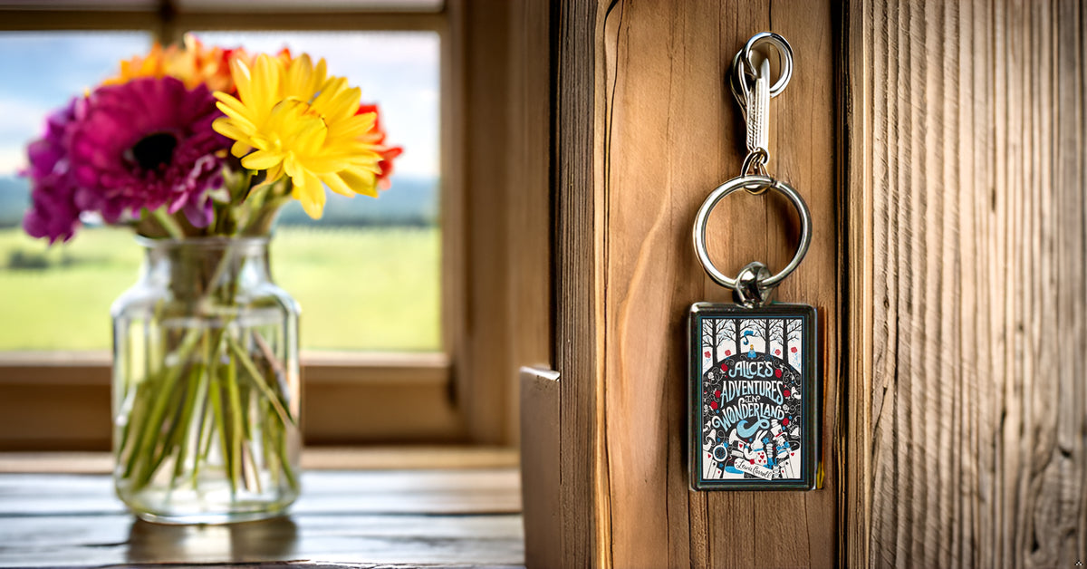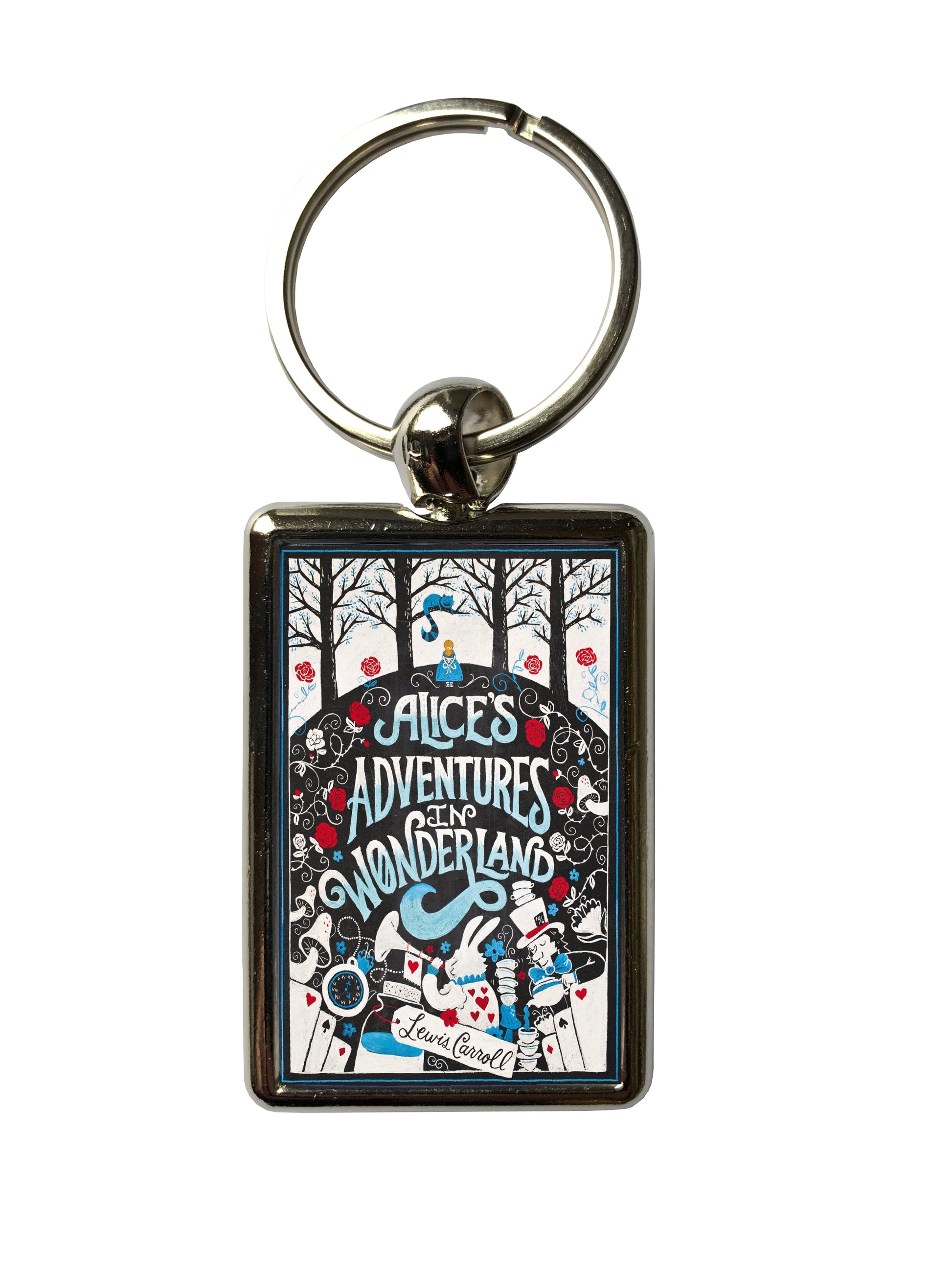 Carry a bit of wonderland with you wherever you go! This Alice in Wonderland book cover keyring is a must-have for any fan of the beloved story.