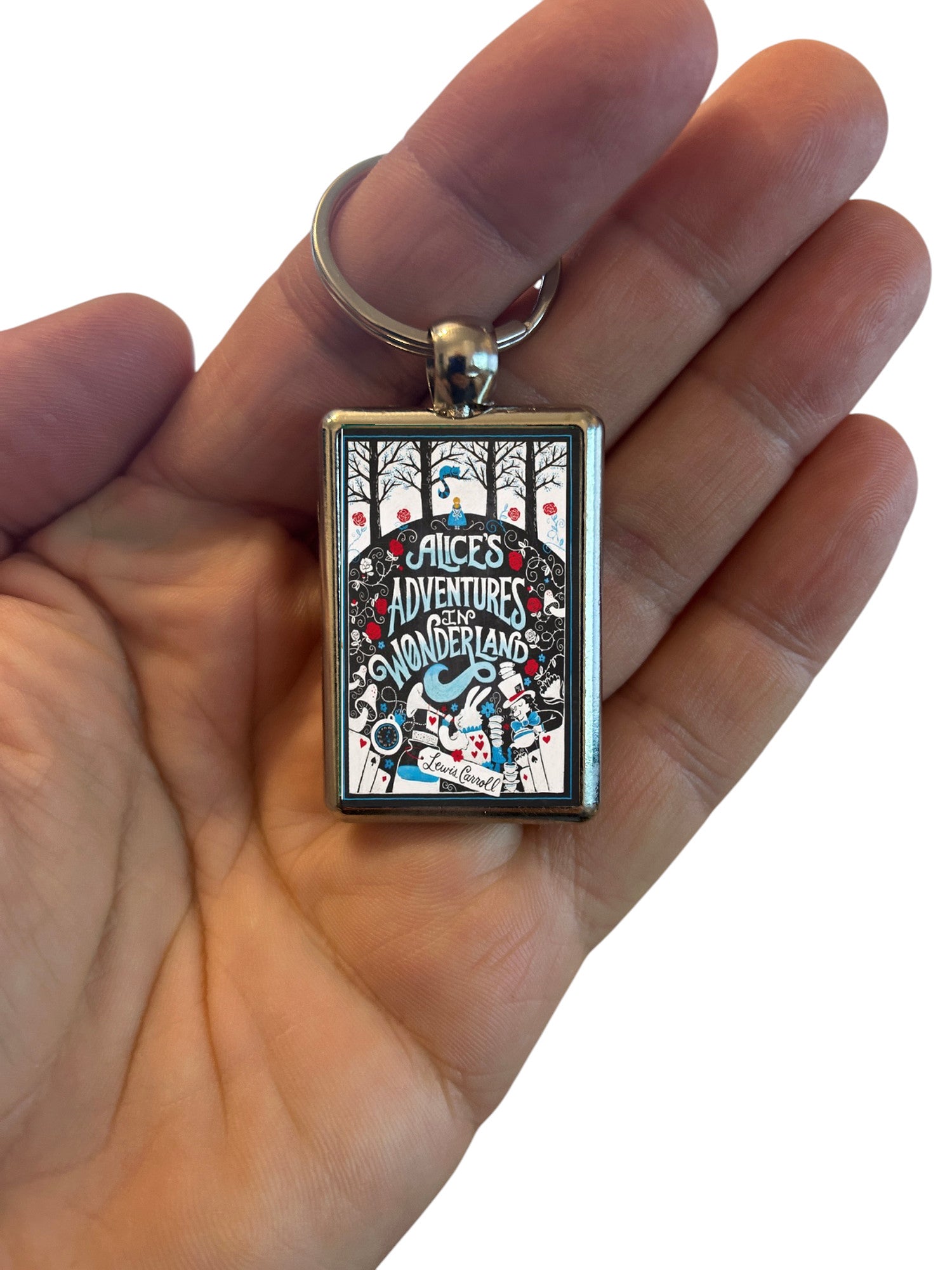 Alice in Wonderland Book Cover Metal Keyring – High-Quality Keychain with Vibrant Colors – Classic Literary Gift