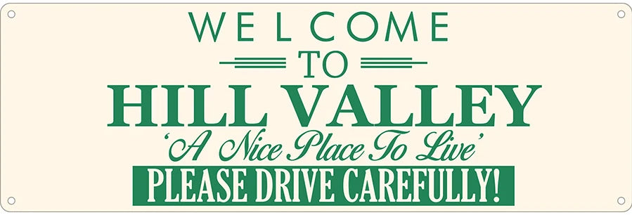 Ajoutez une touche du futur (ou du passé) à votre décoration intérieure avec cette enseigne en métal classique de Hill Valley !