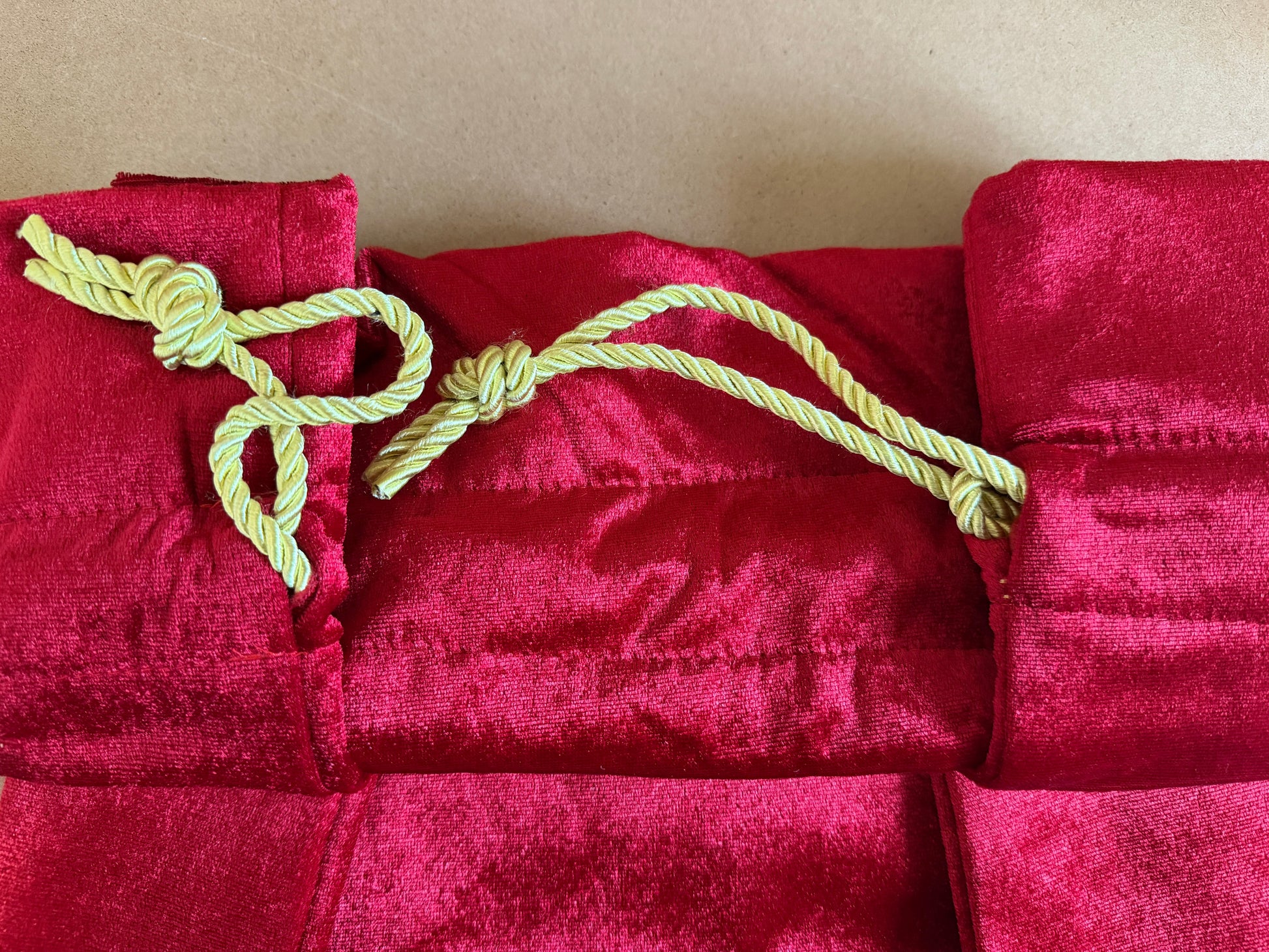 Design: Red velvet with gold embroidered “Merry Christmas”