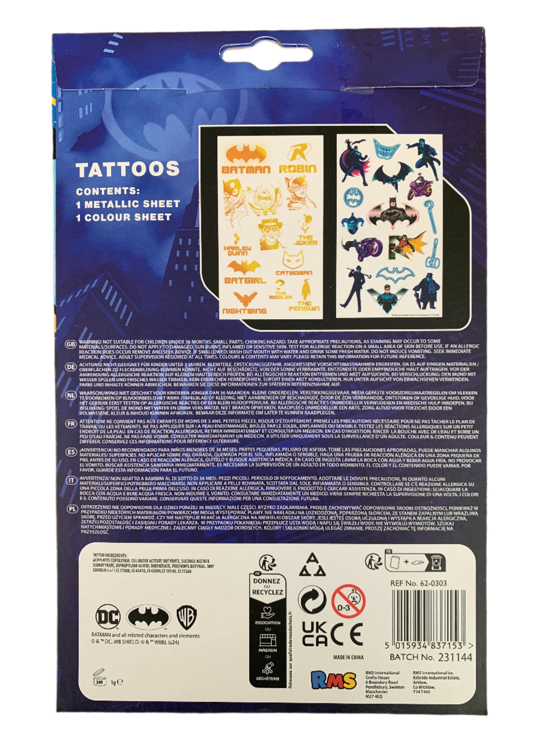 Batman Temporary Tattoos – 29 Pack | Metallic & Colour Sheets | DC Comics Official