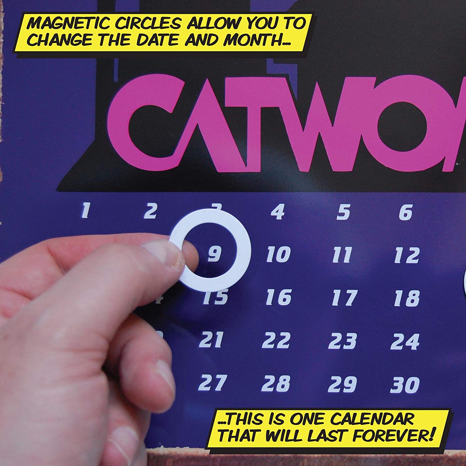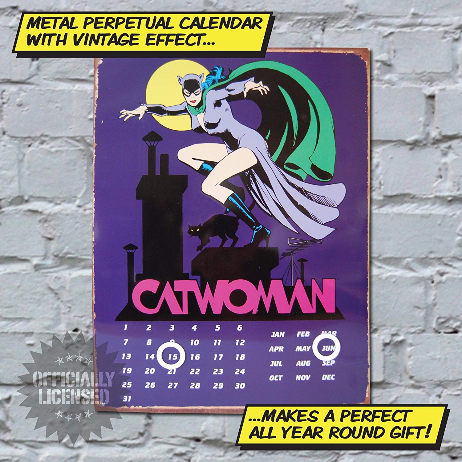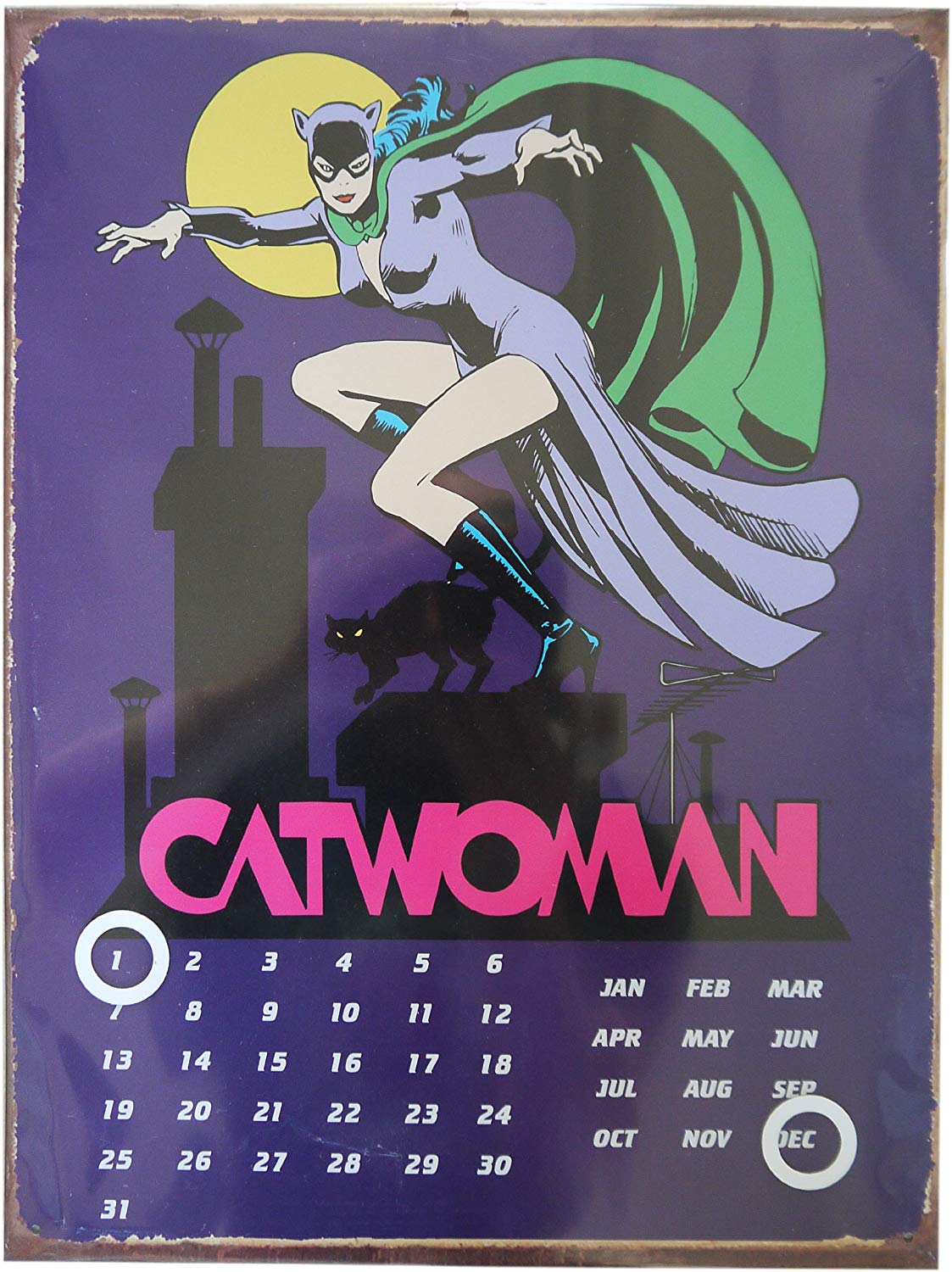 Keep track of time in style with this Catwoman-themed perpetual wall calendar. Say goodbye to buying a new calendar every year—this one has you covered forever!