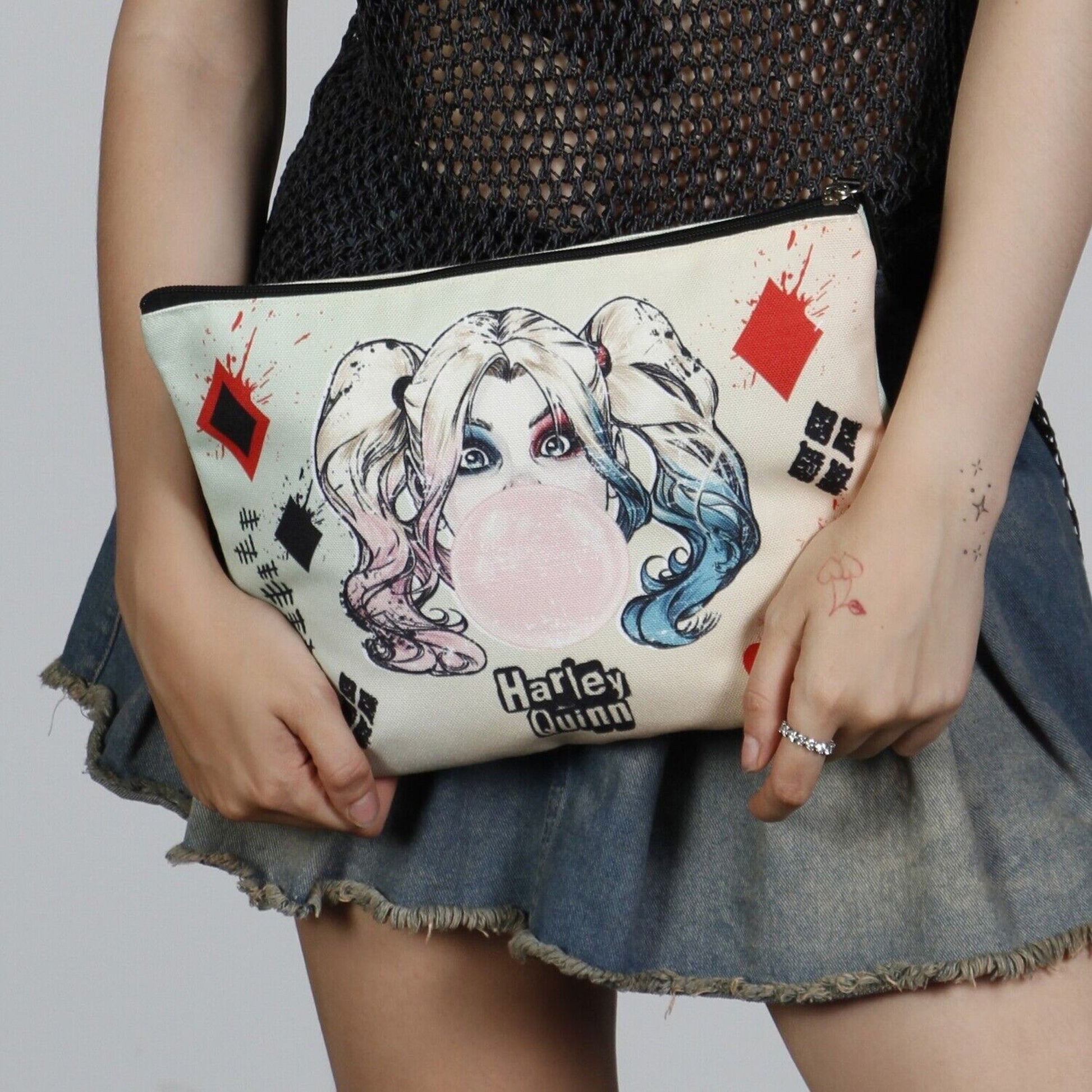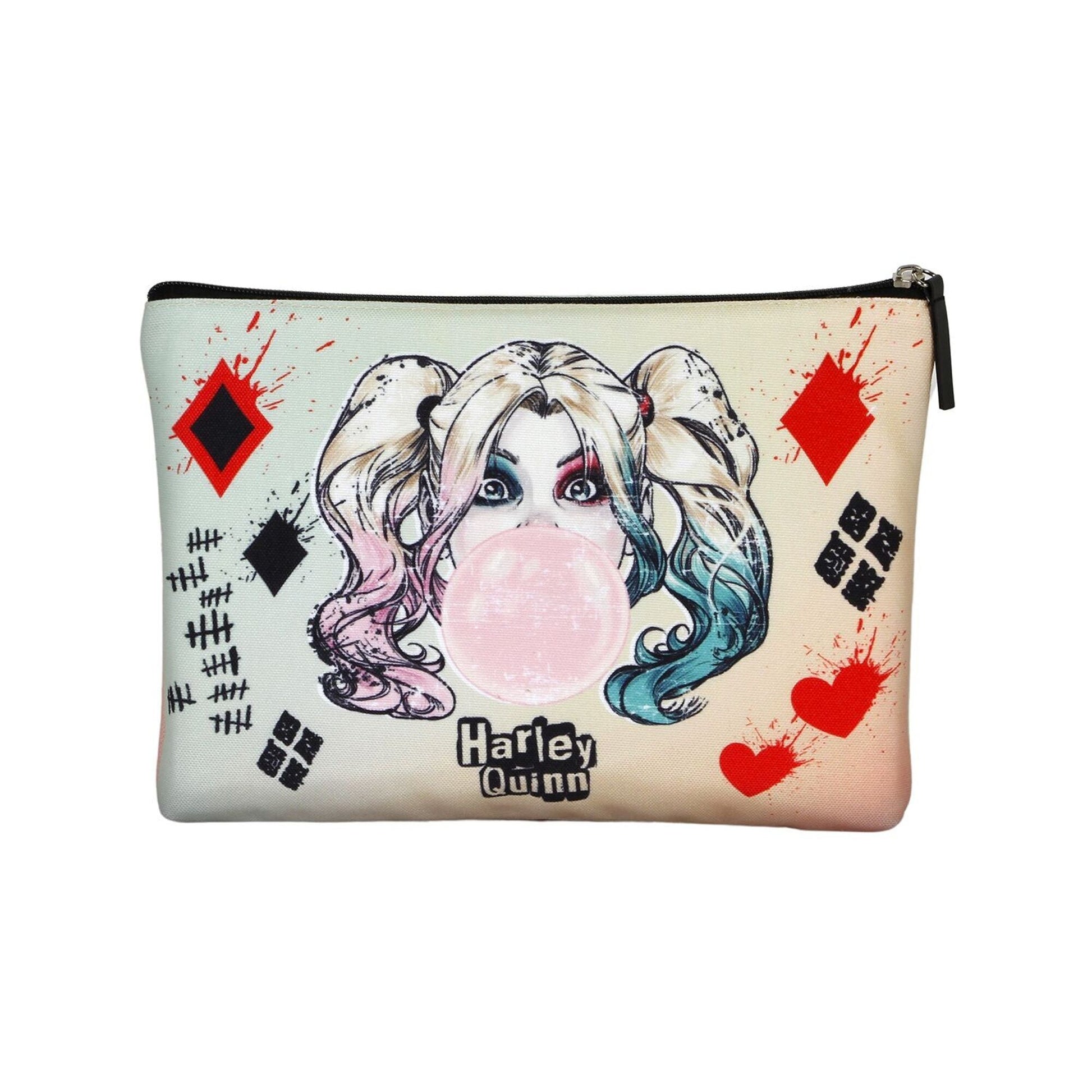Add a dash of mischievous flair to your beauty routine with this Harley Quinn Toiletry/Makeup Bag. Perfect for organizing your cosmetics, toiletries, or beach essentials—all with a touch of villainous fun!