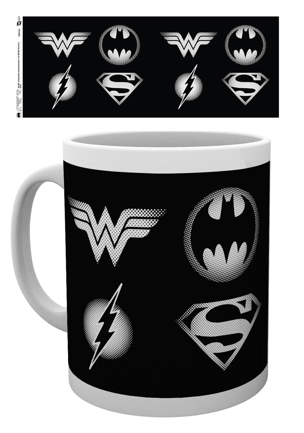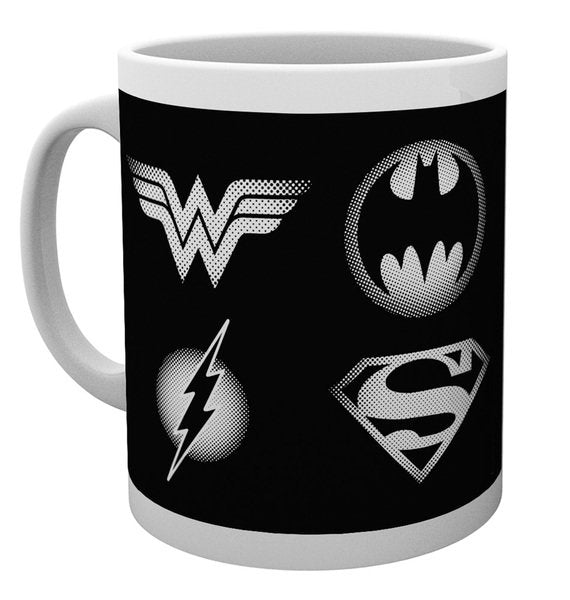 Kickstart your day with a touch of superhero flair! This mug features iconic emblems from Batman, Superman, The Flash, and Wonder Woman, making every sip an epic adventure.