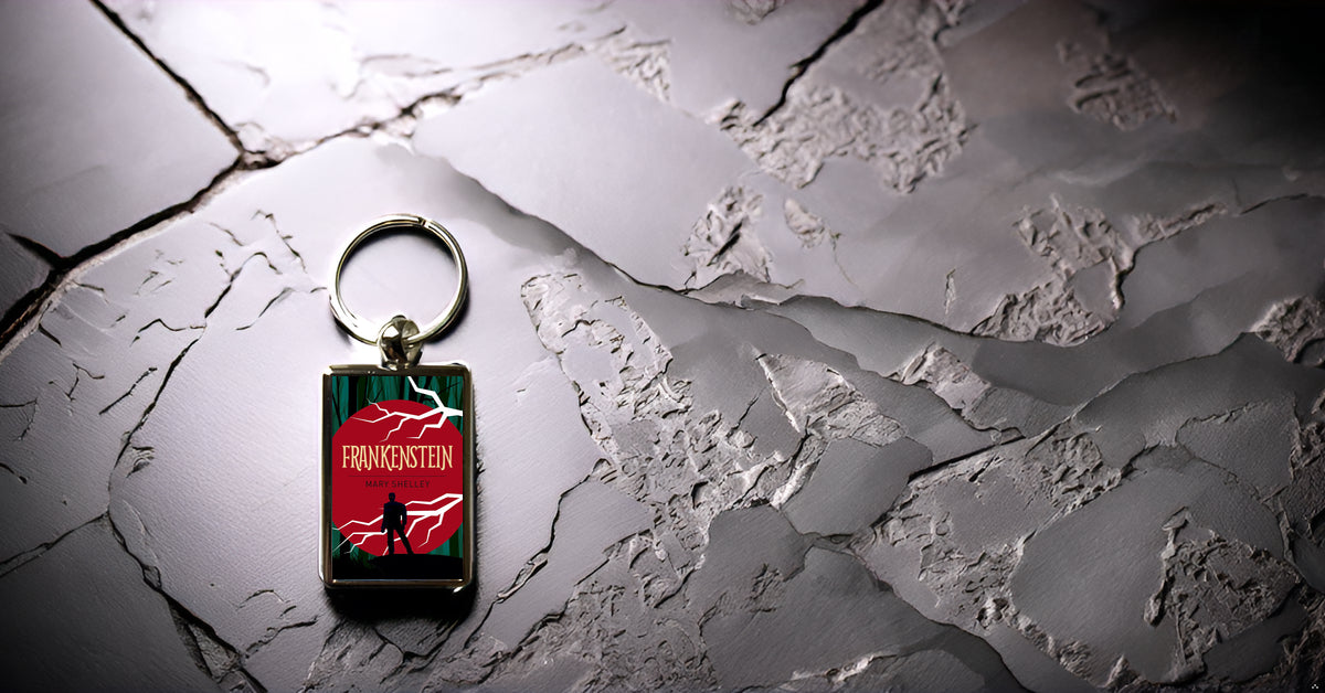 Frankenstein by Mary Shelley Classic Book Cover Metal Keyring – Gothic Horror Gift