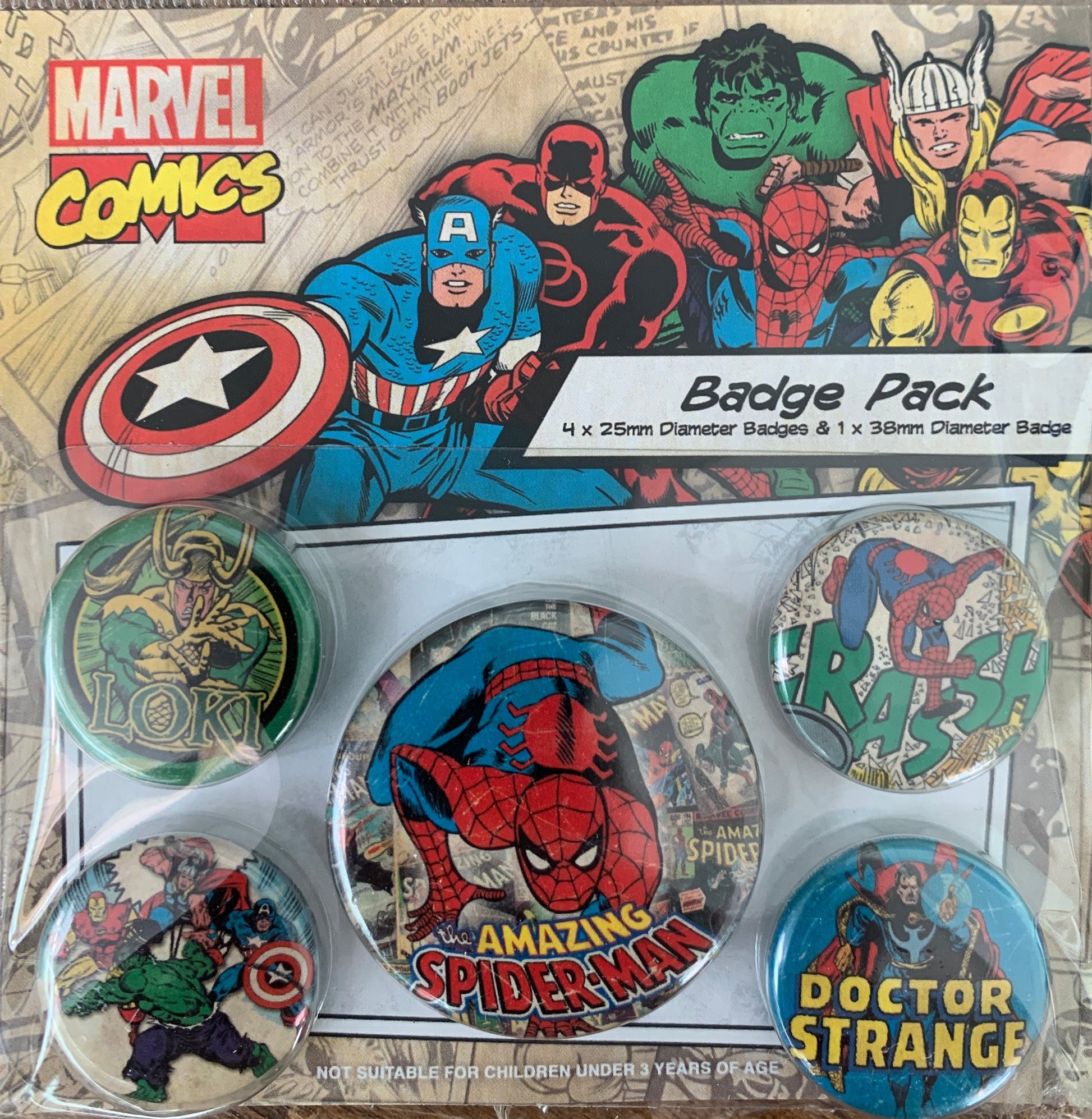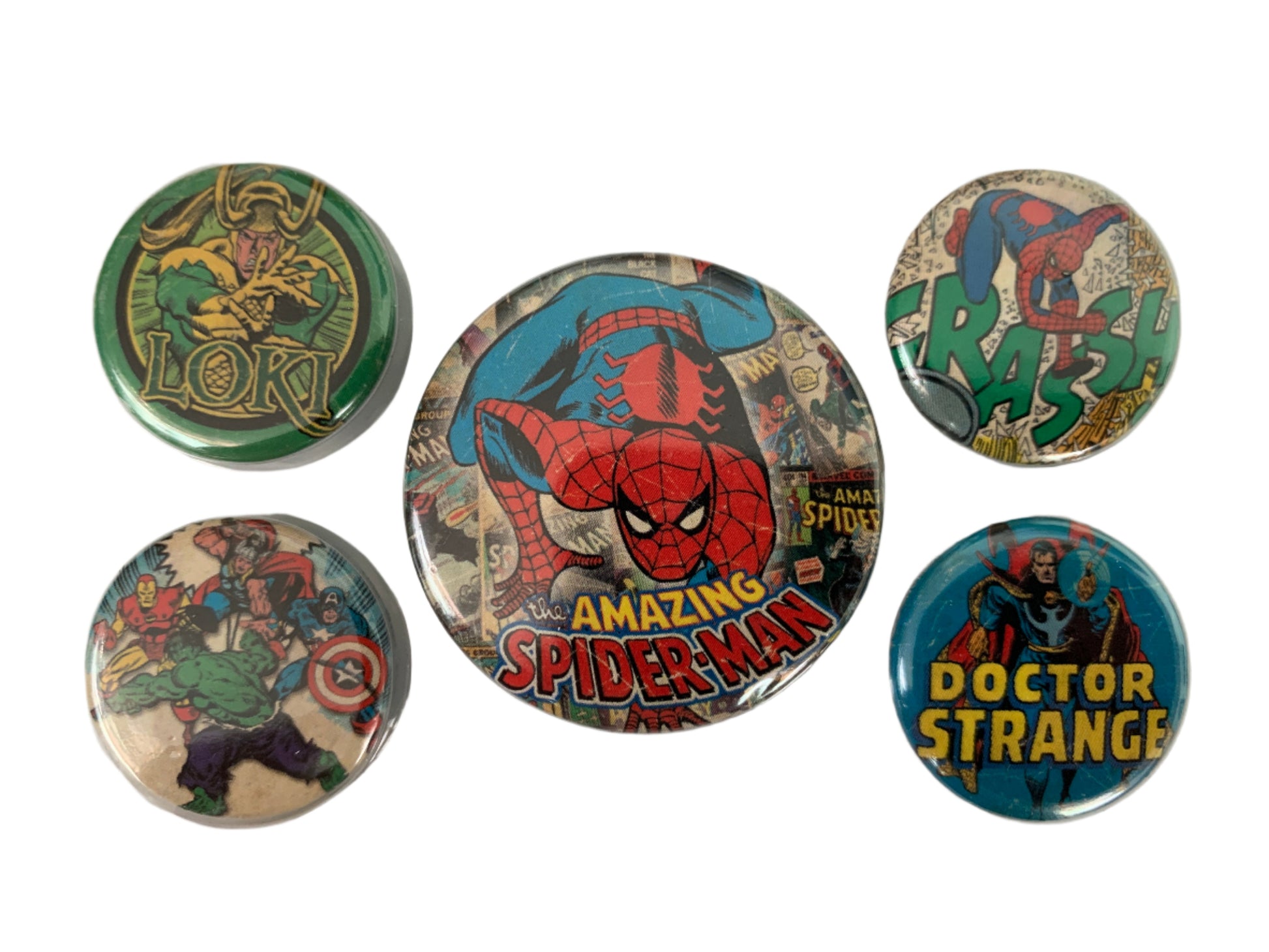 Marvel Comics Badge Pack – Set of 5 Superhero Badges Featuring Loki, Dr Strange & More