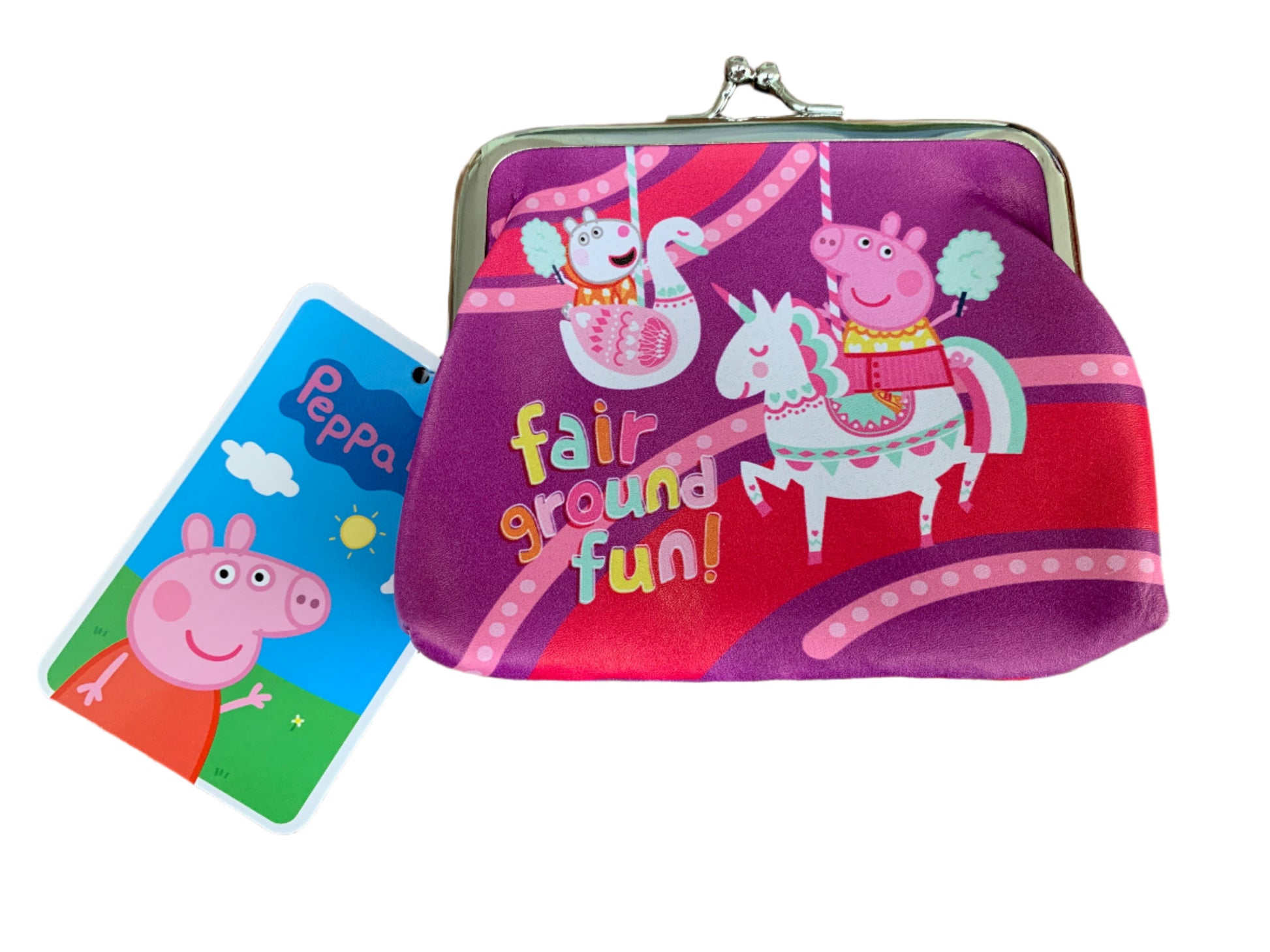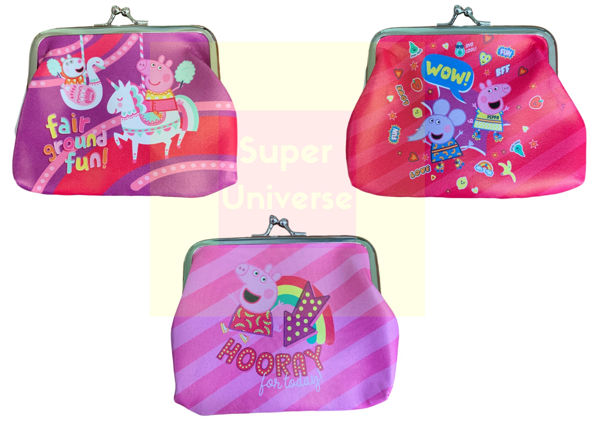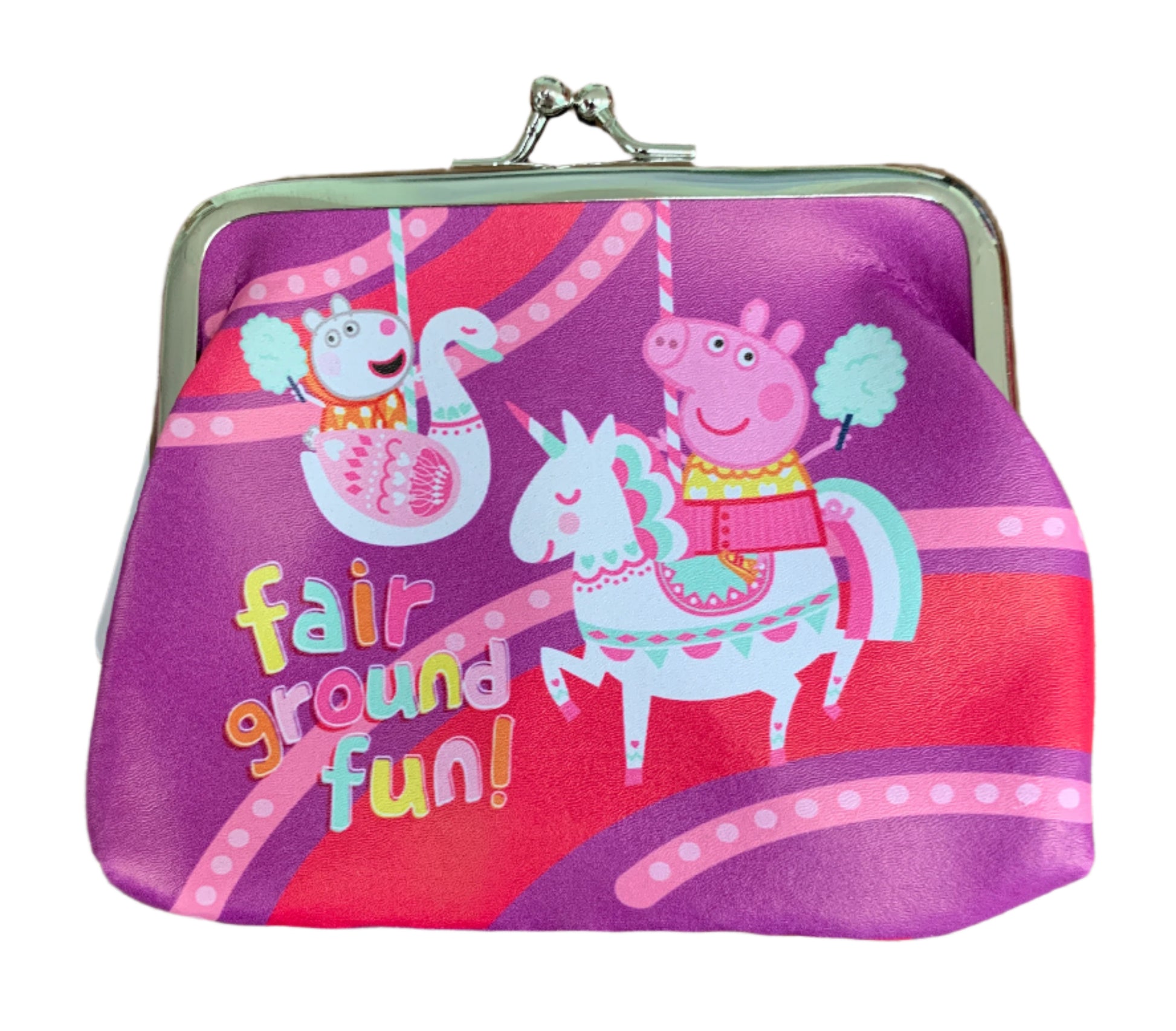 reat your little one to a charming official Peppa Pig coin purse, perfect for carrying pocket money, trinkets, or little treasures. Choose from three colourful designs featuring Peppa and her friends!