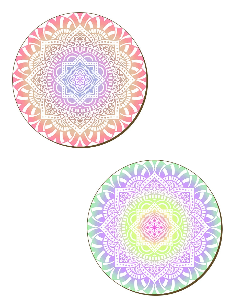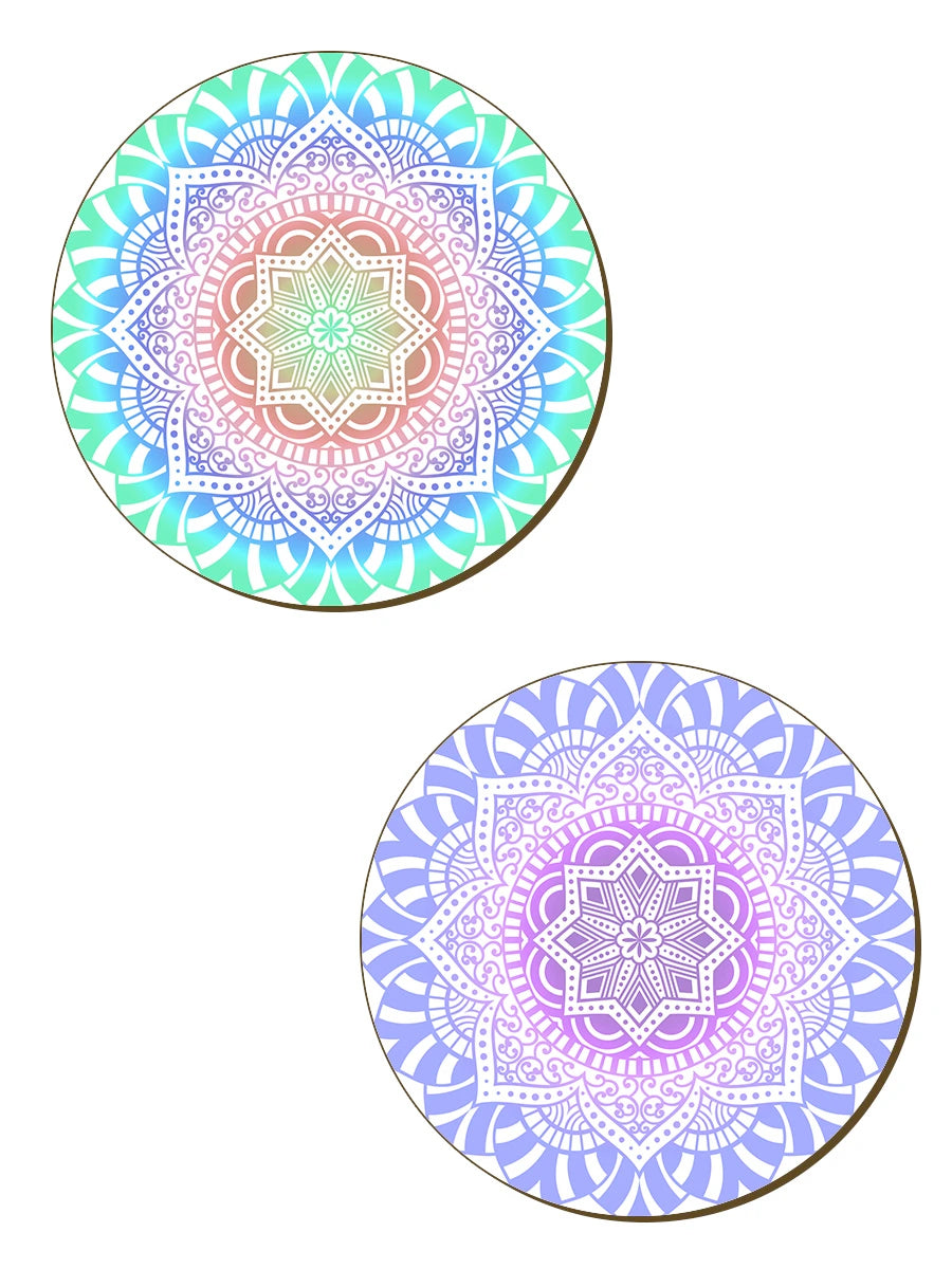 Add a touch of elegance and zen to your home with these stunning mandala-themed coasters. Perfect for protecting your surfaces while bringing a pop of color to your space, they also make a great, fun gift!
