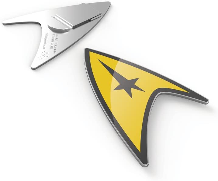 Calling all Star Trek fans! Keep your place in any book or journal with this officially licensed Star Trek emblem bookmark. Made from high-quality metal, it clips securely over the top of the page, adding a touch of sci-fi style to your reading adventure.