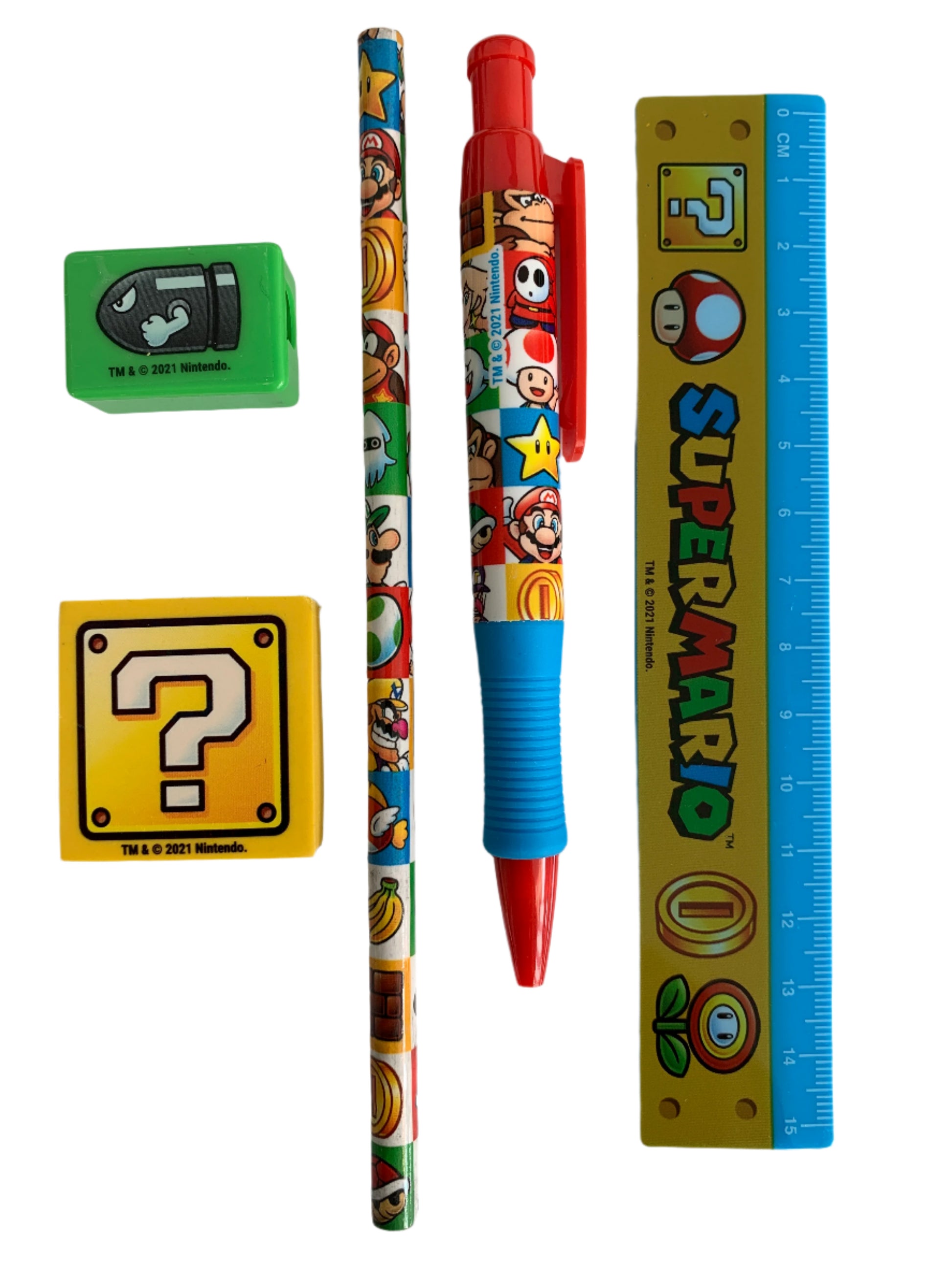 Super Mario Colour Block Stationery Set – Pen, Pencil, Ruler, Eraser, Sharpener & Case