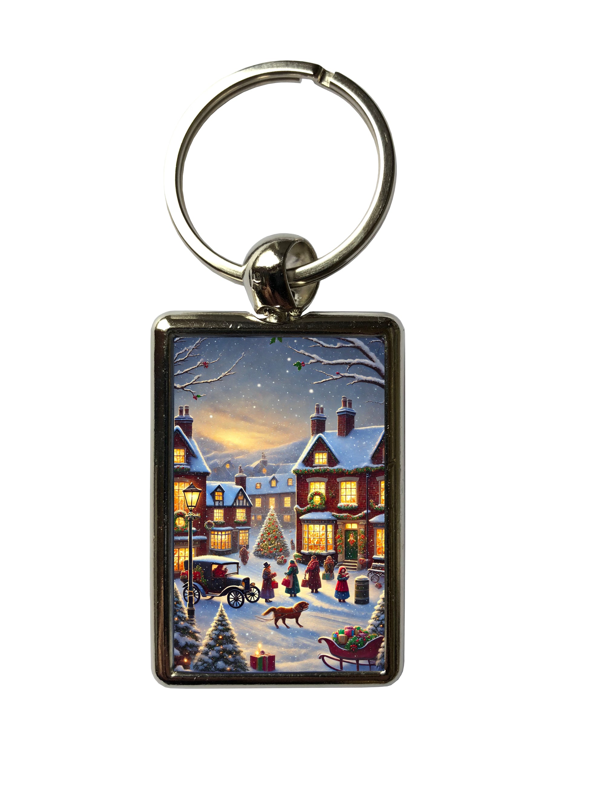 π Traditional Christmas Scene Metal Keyring β The Perfect Holiday Keepsake! π
