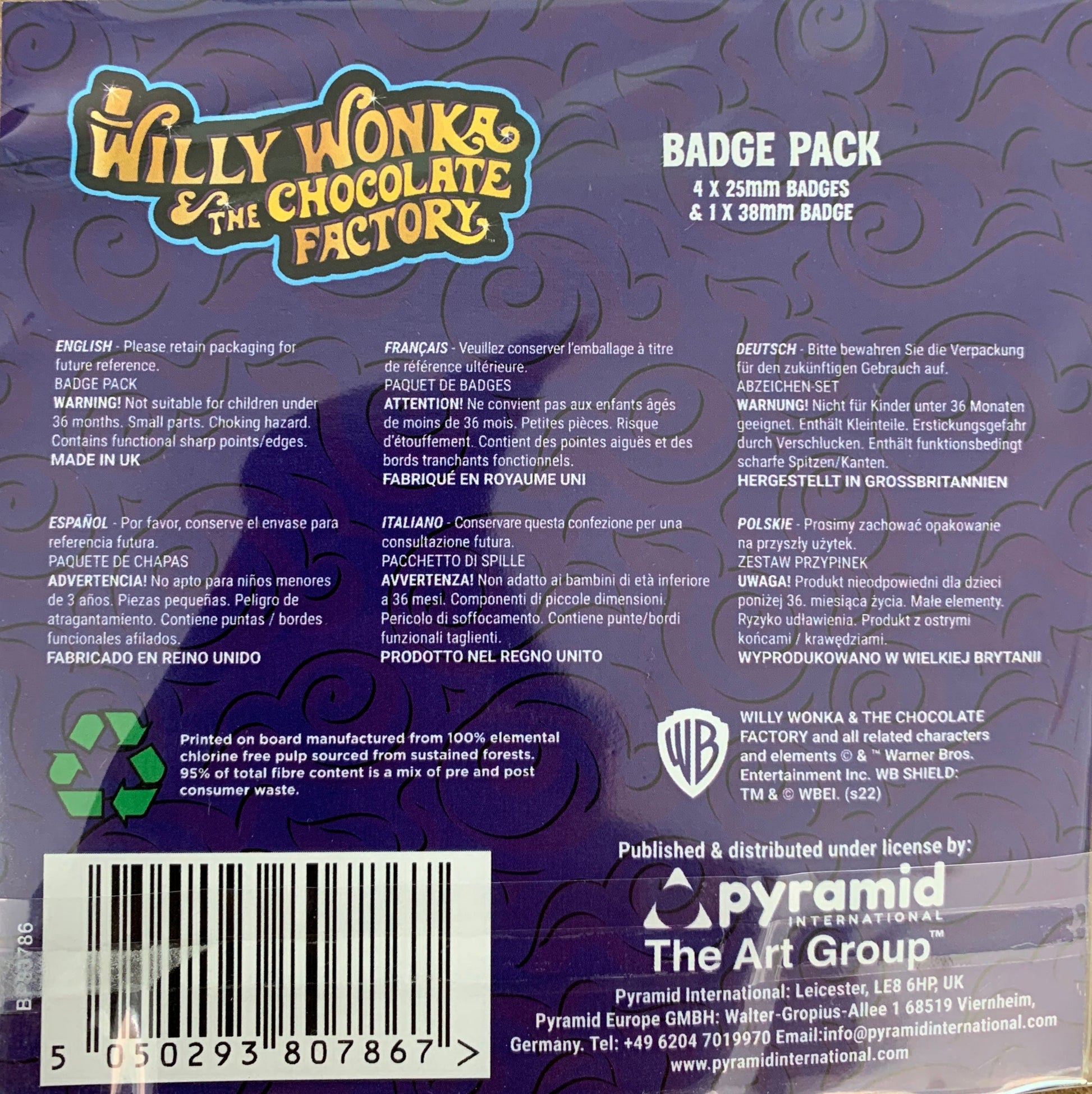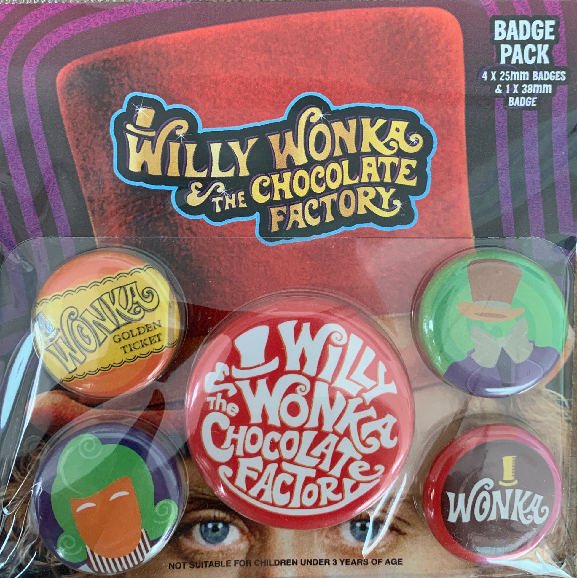 Willy Wonka & The Chocolate Factory Badge Pack – Set of 5 Official Pin Badges